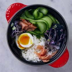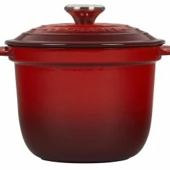 Rice is one of the most versatile ingredients in your kitchen and if you want to cook it right you need the Le Creuset Cast Iron Rice Pot in Cerise. This stove-top rice pot features Le Creuset’s famous enameled cast iron housing providing temperature control and a durable stoneware cooking insert that evenly cooks the contents. From red beans and rice to lentil soup, there are countless recipes that you can whip up with ease using the Le Creuset Rice Pot. The rice pot is designed with curved sides that facilitate convection while the non-porous stoneware doesn’t absorb the resulting moisture, allowing it to permeate the rice and result in fluffy grains perfect for any recipe. Don’t risk half-finished rice, get the Cast Iron Rice Pot from Le Creuset today and enjoy perfectly cooked dishes for years to come!