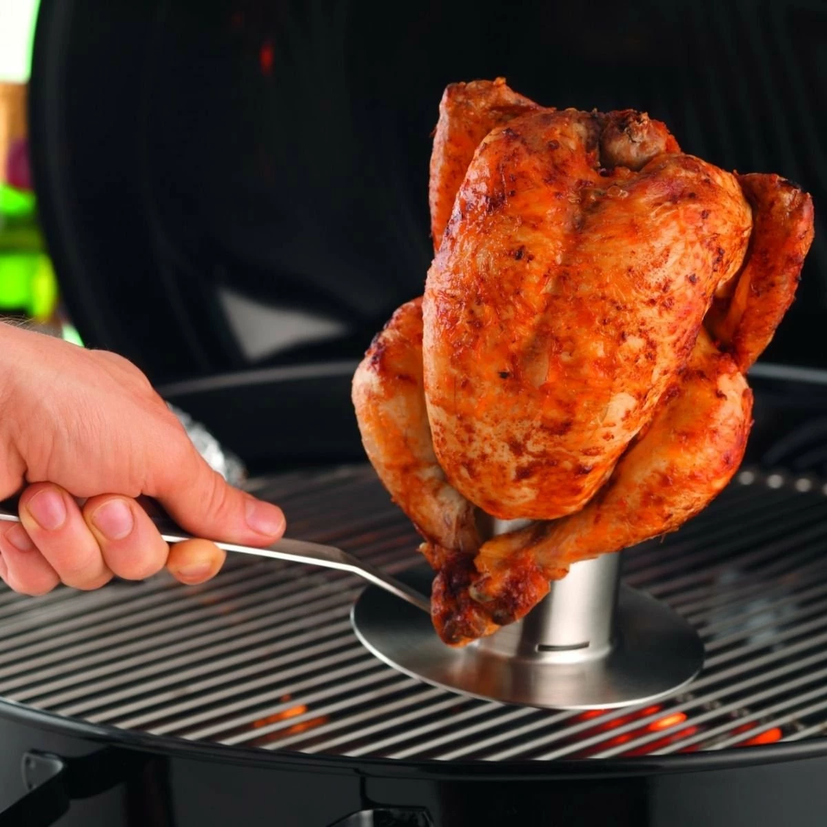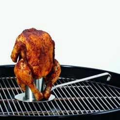 - Ideal for roasting chicken or other poultry on the grill